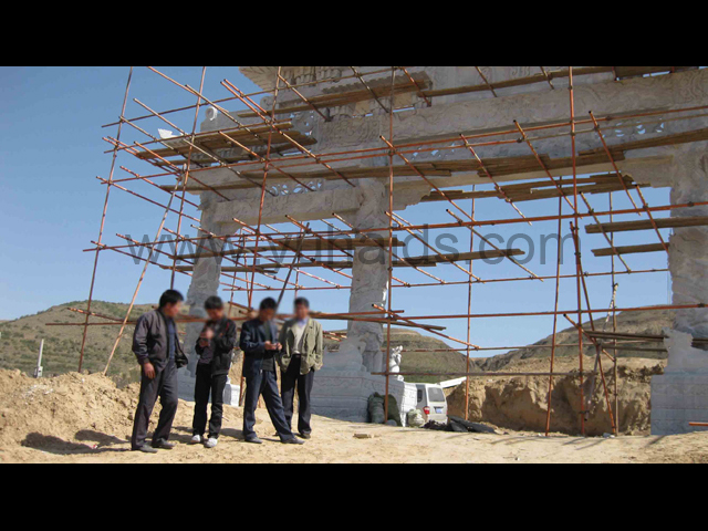 這是南京德明園大理石石雕牌坊應用案例。整個牌坊以大理石雕刻制作而成,主要以龍紋作為裝飾圖案,包括柱體和牌坊其他部件,大都可以看到龍的形態。
