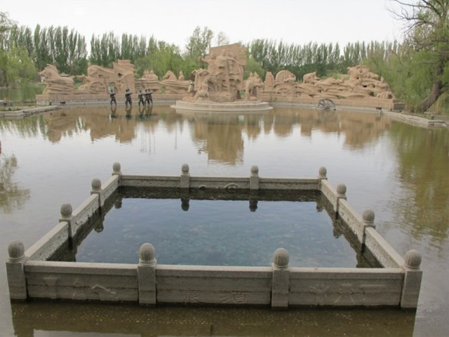 酒泉公園因園內有泉有湖亦稱泉湖公園,是著名的西漢酒泉勝跡,已有兩千多年的歷史,是河西走廊的一座古典園林,園前廣場亦稱漢武廣場,是景區入口的走廊。